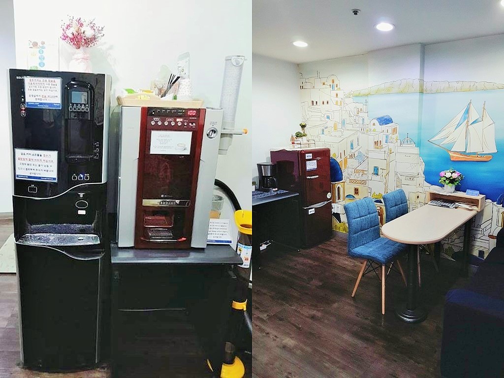 차와 함께 휴식을..커피 얼음 정수기,원두커피,냉장고 비치/ 다과 제공